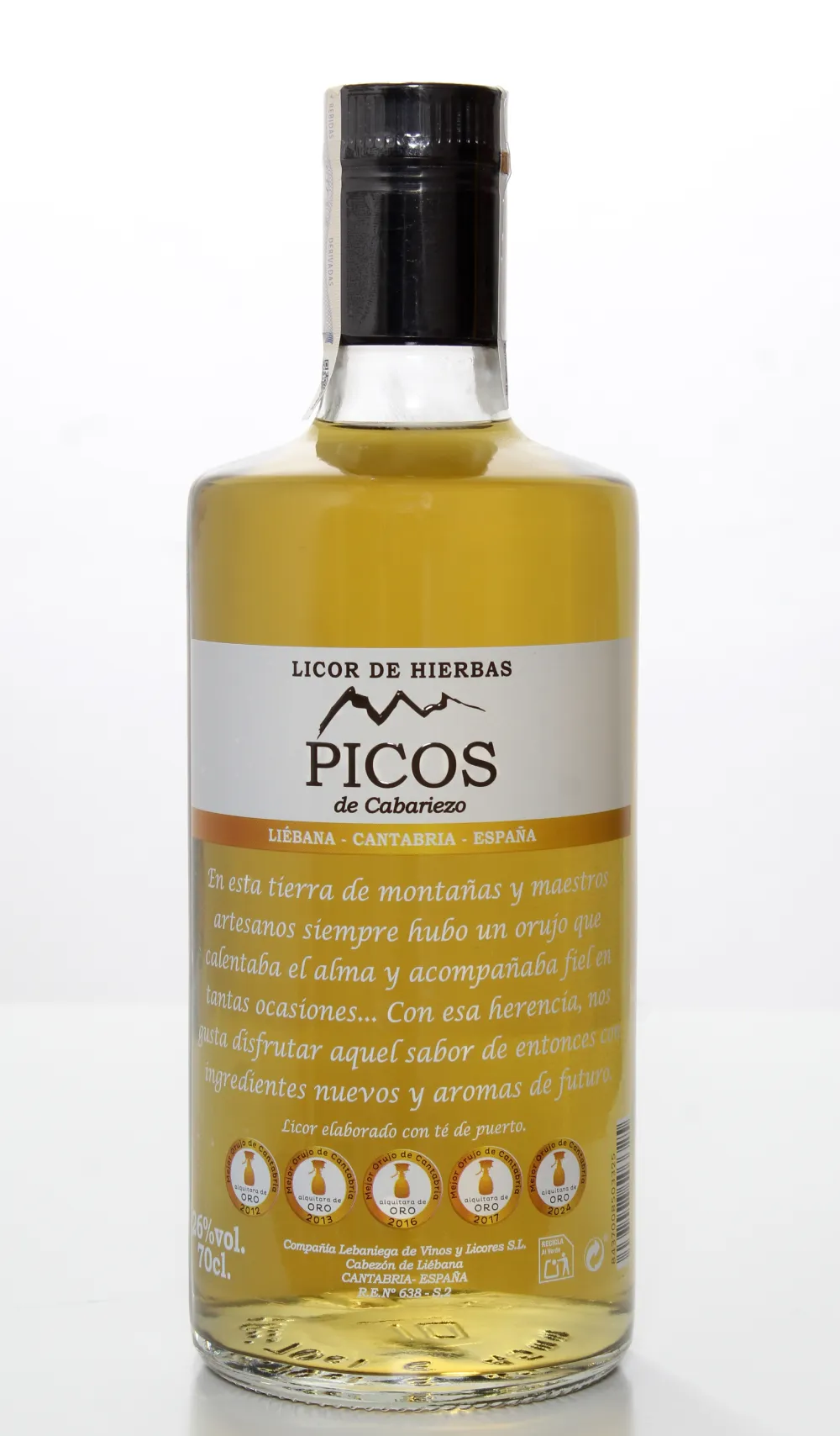 Ginebra Premium de altísima calidad elaborada artesanalmente con agua de Los Picos de Europa y botánicos destilados en la alquitara tradicional lebaniega. Resulta fina, envolvente y muy aromática en nariz, e invita a disfrutarla sola, como siempre se ha hecho con los destilados puros en estas tierras, y tiene un paso por boca seco, largo y elegante, consiguiendo un equilibrio ideal para todo tipo de combinados y preferencias.